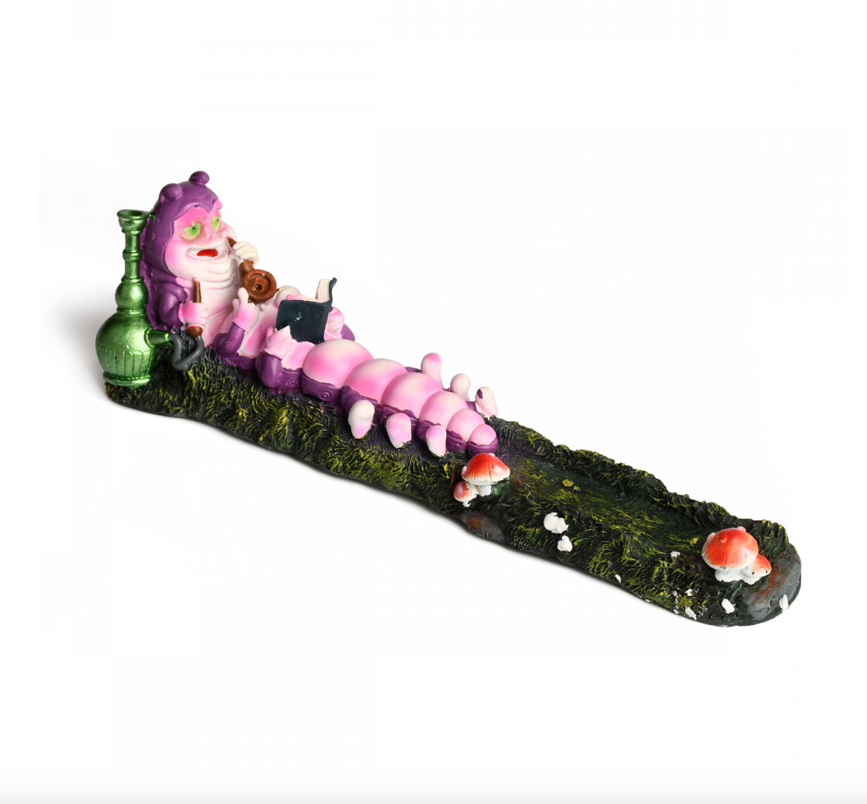 Let me tell you, this is one cool cat(erpillar). While he may appear to be made of leaves and mushrooms, he's actually made of a durable polyresin to keep your incense safe and secure while it burns. Now you can watch the caterpillar hit his hookah while you smoke!